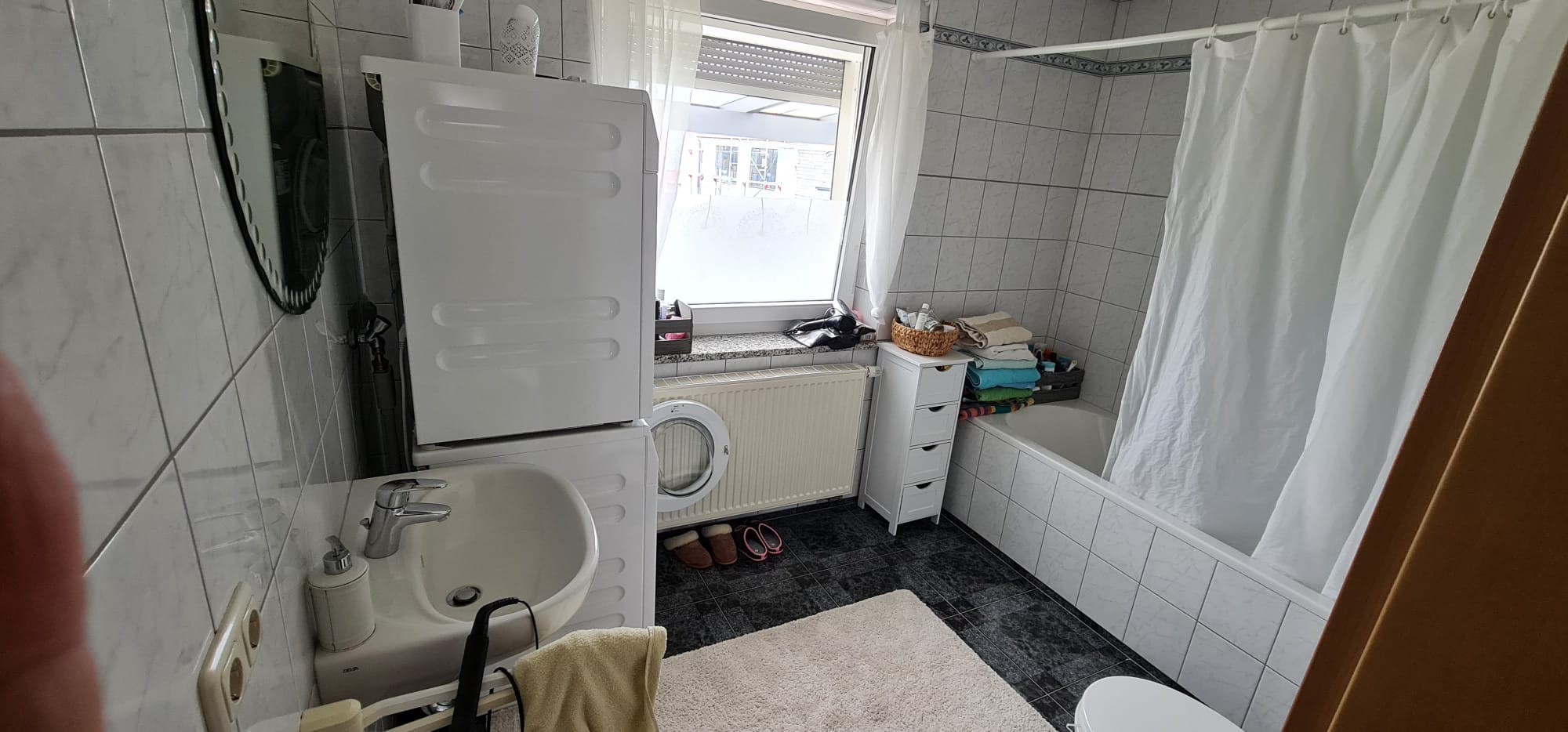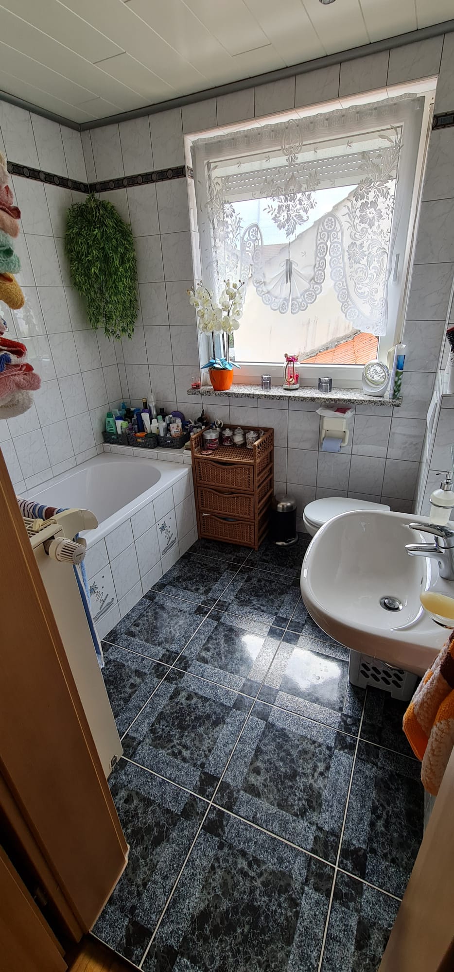 - helles Hauptbad mit Badewanne