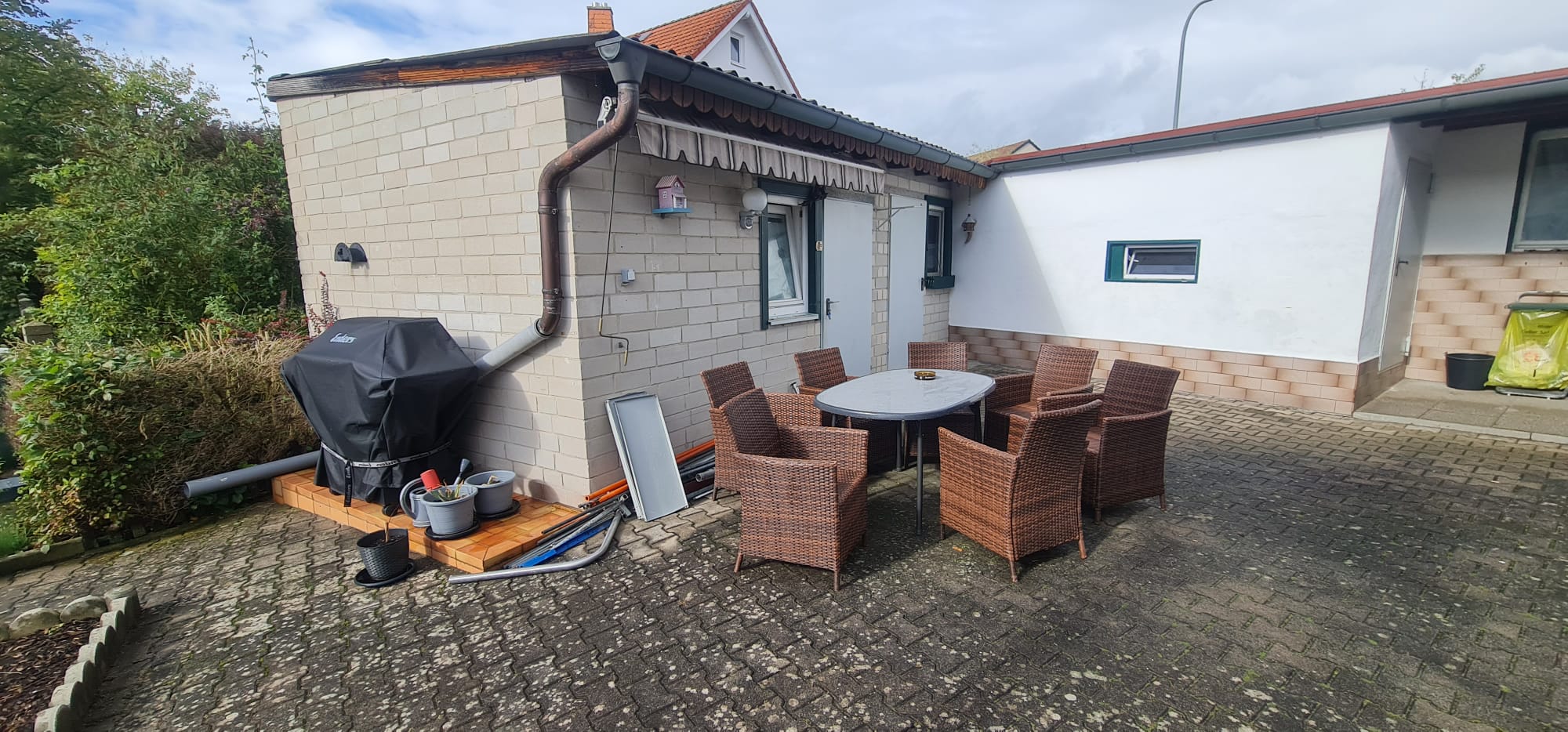 Zu dieser Wohneinheit gehören noch zwei Garagen, ein Carport, ein Grillplatz, zwei Hobbyräume hinter der Garage, sowie ein Gartenanteil von ca. 530m² mit Gartenhütte.