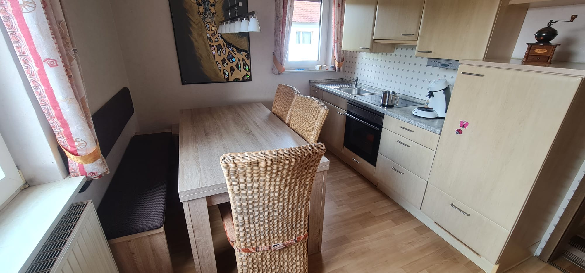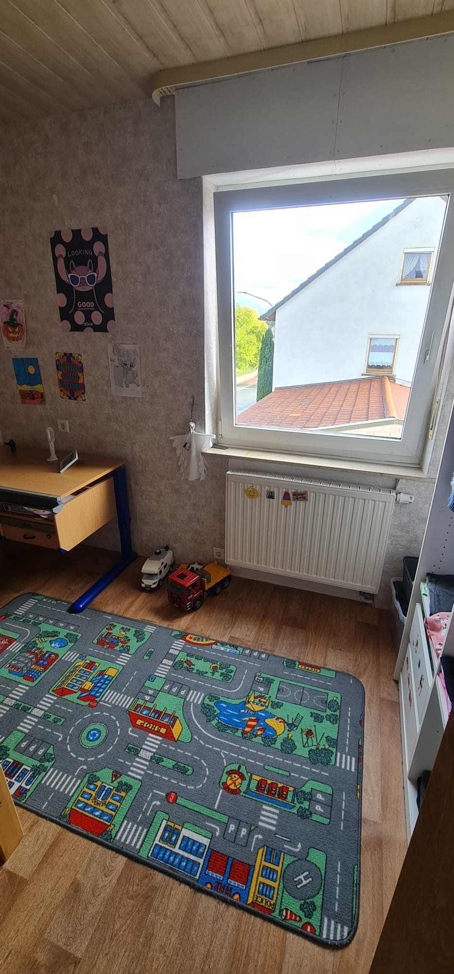 Die zweite Wohnung befindet sich im Dachgeschoss, welcher erst vor drei Jahren final ausgebaut wurde. Hier gibt es auch ein neues „barrierefreies“ Bad mit Fenster, ein Kinderzimmer, ein Schlafzimmer, eine offene Küche mit Essbereich und Wohnzimmer, welches aktuell zum Schlafzimmer umfunktioniert wurde.