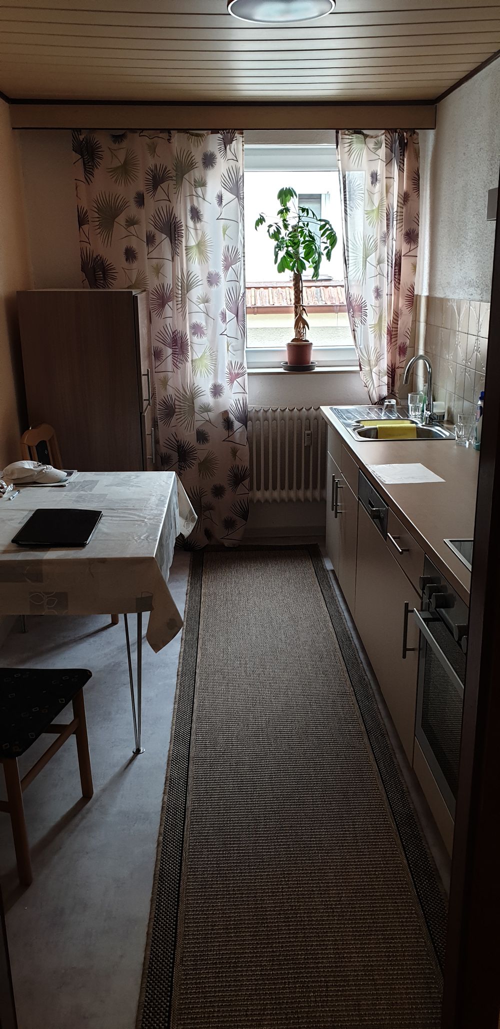 Die Wohnung hat ein großes Bad mit Fenster, ein Gäste-WC, einen Küchenraum mit Einbauküche „im Preis inbegriffen“, ein großes Wohnzimmer und ein Schlafzimmer. Kleiner Abstellraum in der Wohnung und ein großer Abstellraum auf dem Dachboden gehören noch zum Verkaufsobjekt.